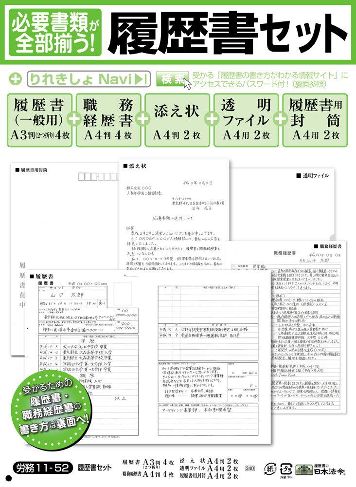 日本法令必要書類が全部そろう!履歴書セット労務11-52A4判