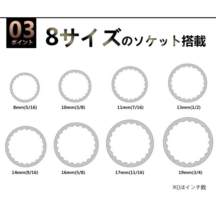 ■多種類に対応!4角、6角、8角、12角などの多種類のボルトやナットに対応しています。