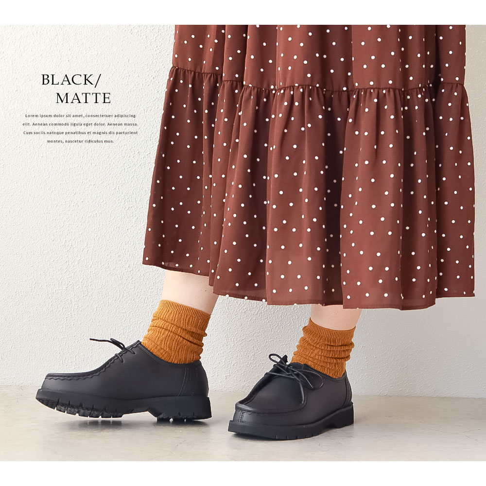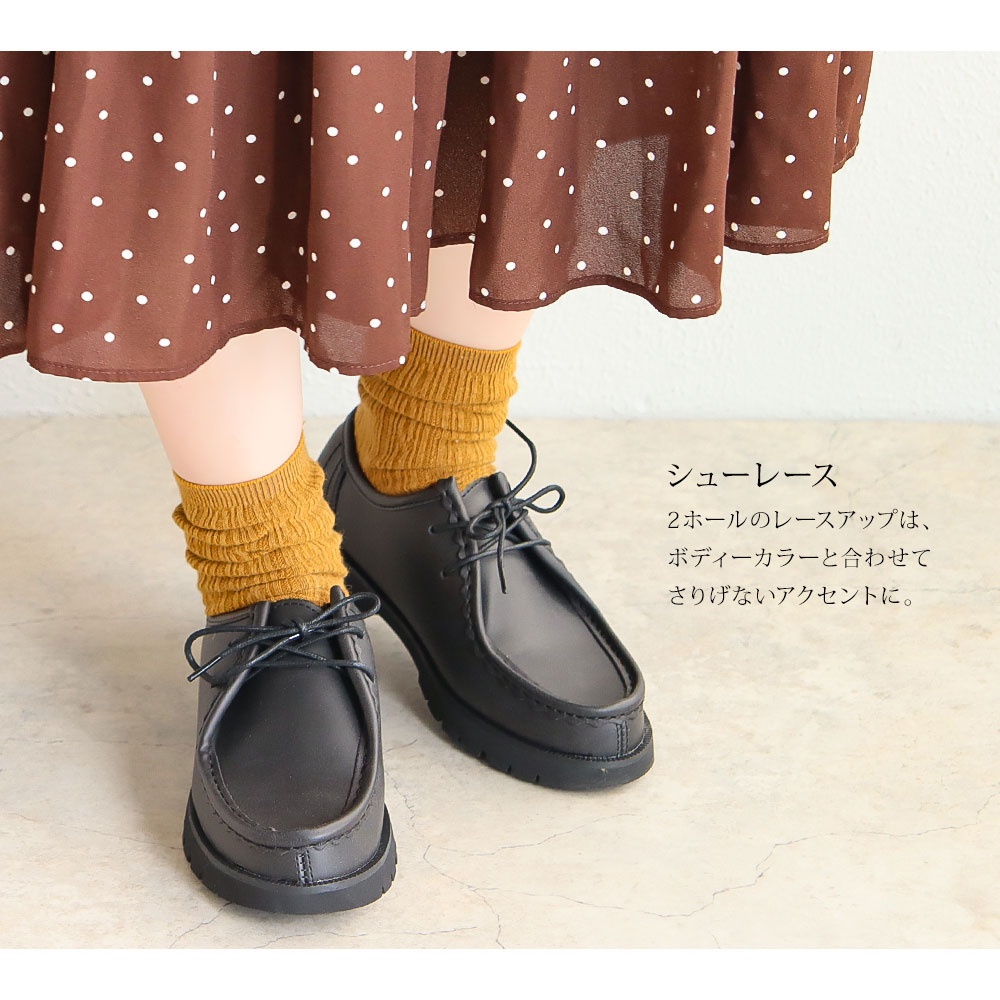 2ホールのレースアップは、ボディーカラーと合わせてさりげないアクセントに。