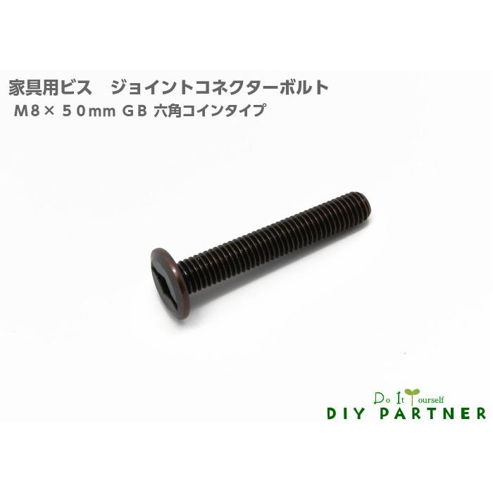 ジョイント コネクターボルト JCB M8×50mm GB コイン六角 1個 DIY連結金具 組み立てネジ 家具ネジ ジョイントネジ
