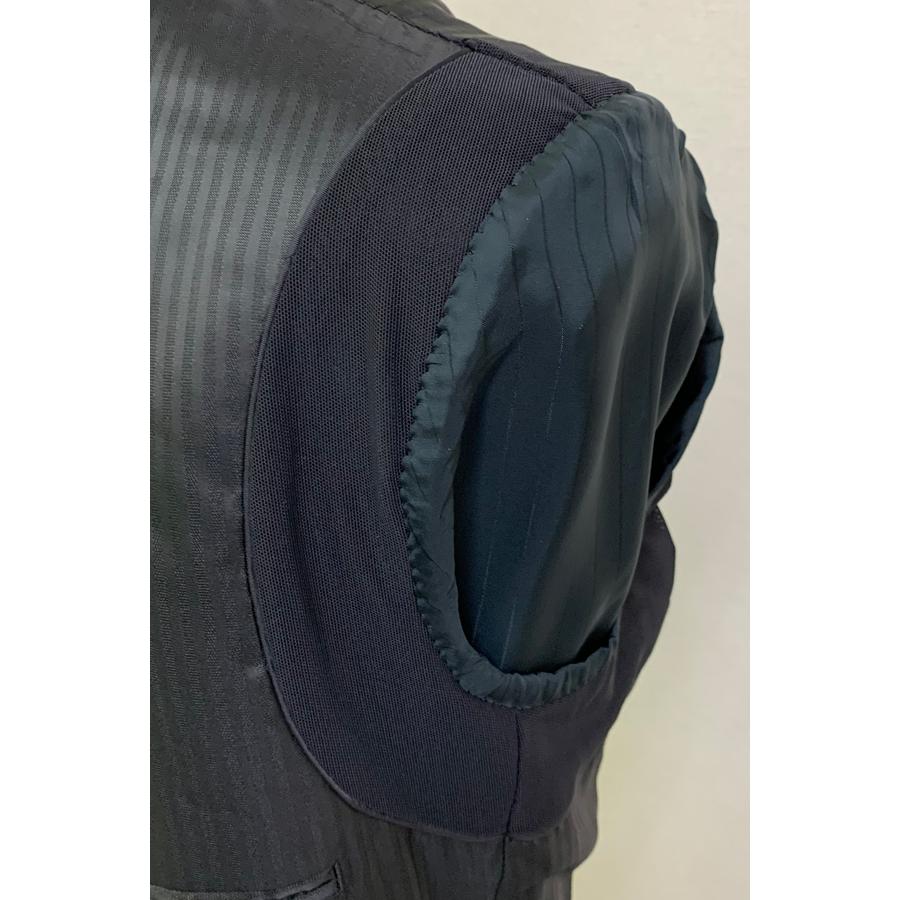■上衣:ラペル毛芯仕様、ノーベント、背裏背抜き(半裏)パイピング仕様、胸箱ポケット、左右腰ポケット(フラップ付)、袖ぐりパワーネット、左右内ポケット