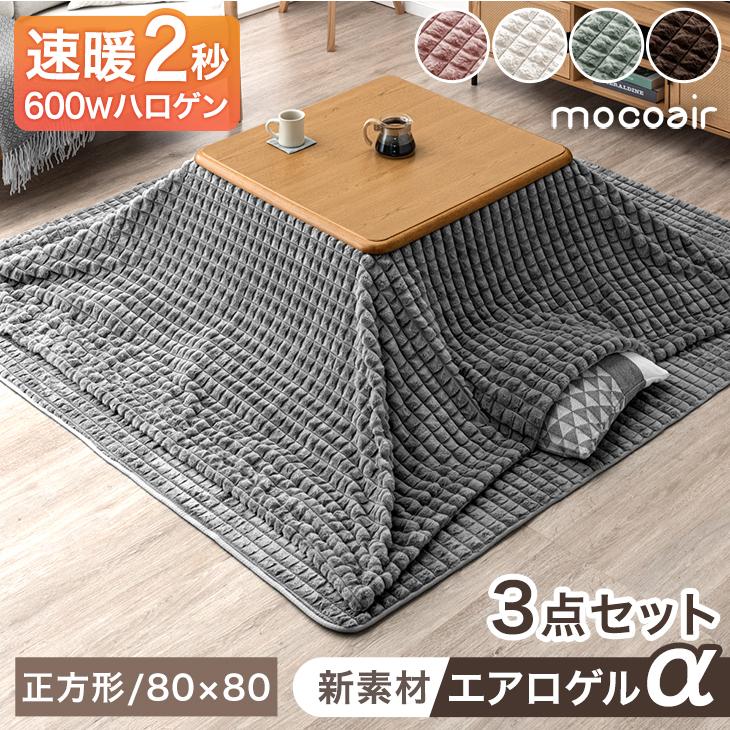 こたつセット 正方形 80×80 3点セット 洗える おしゃれ こたつテーブル こたつ布団 ハロゲン 手元コントローラー こたつ 炬燵