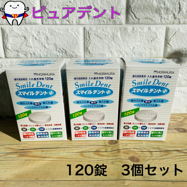 スマイルデント 120錠 3個スマイルデント 48錠 2個トリプル除菌剤(Ag+、CPC、IPMP)配合の入れ歯洗浄剤になりました!!