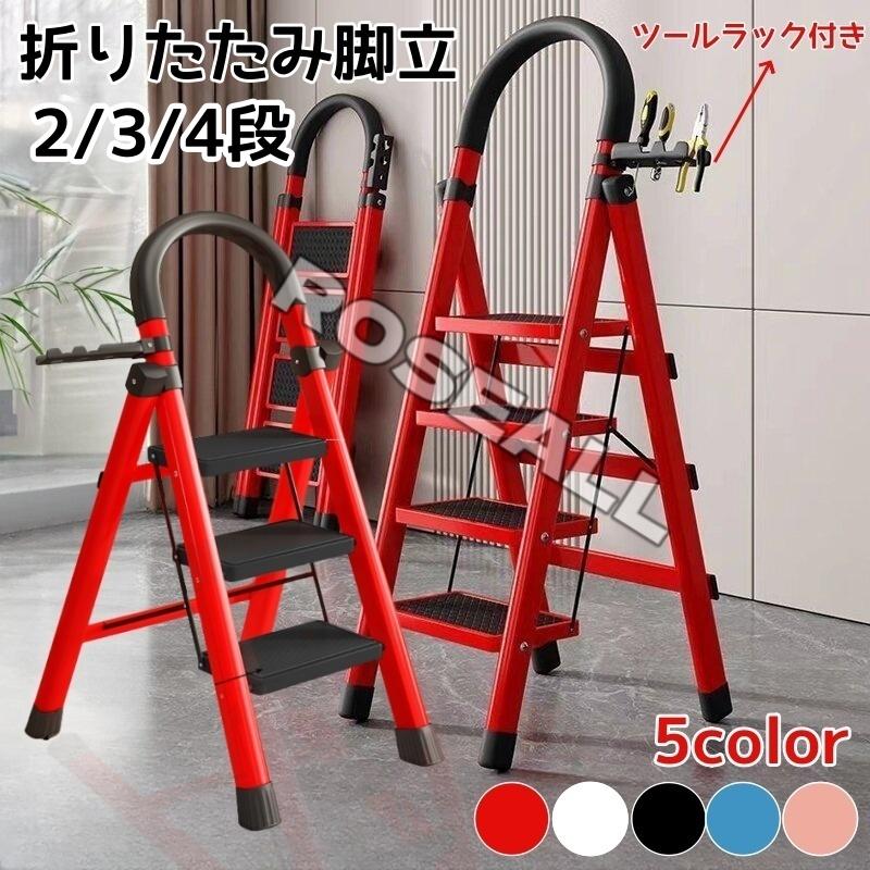 脚立踏み台 2/3/4段耐荷重250kg取っ手付き折りたたみ収納ステップ滑り止め コンパクト収納持ち運び 完成品大掃除 洗車台おしゃれ5色ホワイト ステップチェア