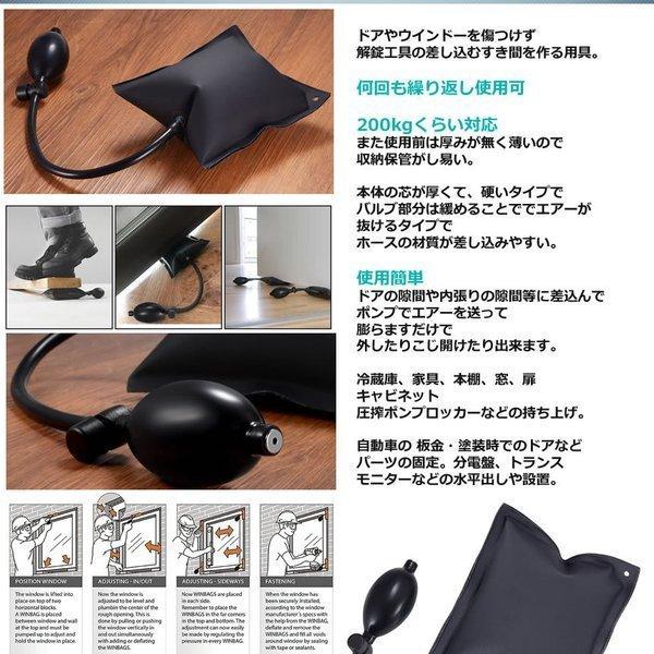 ドアの隙間や内張りの隙間等に差込んでポンプでエアーを送って膨らますだけで外したりこじ開けたり出来ます。