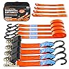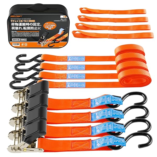 AWELCRAFT ラチェット式タイダウンベルト 破断荷重700KG GS認証取得済み 4本セット 長さ5M 荷締めベルト 幅25mm ラッシングベルト 荷締機 固定ベルト 固定バンド 締付固定 多用途 引越し 運搬用 オレンジ