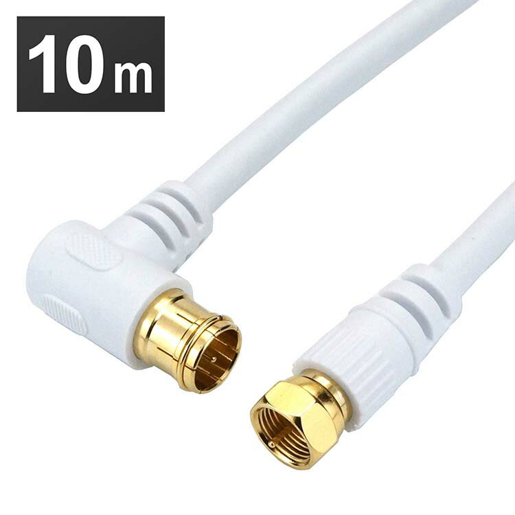 ホーリック アンテナケーブル L型差込式-ストレート型ネジ式 S-4C-FB同軸ケーブル 10m ホワイト HAT100-045LSWH