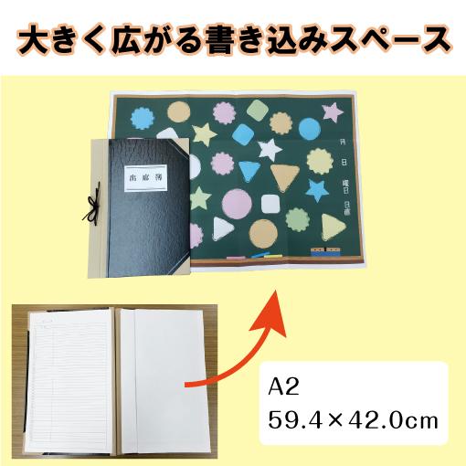 見た目は本物の出席簿と変わらないサイズですが、中身は大きく広げることができます。