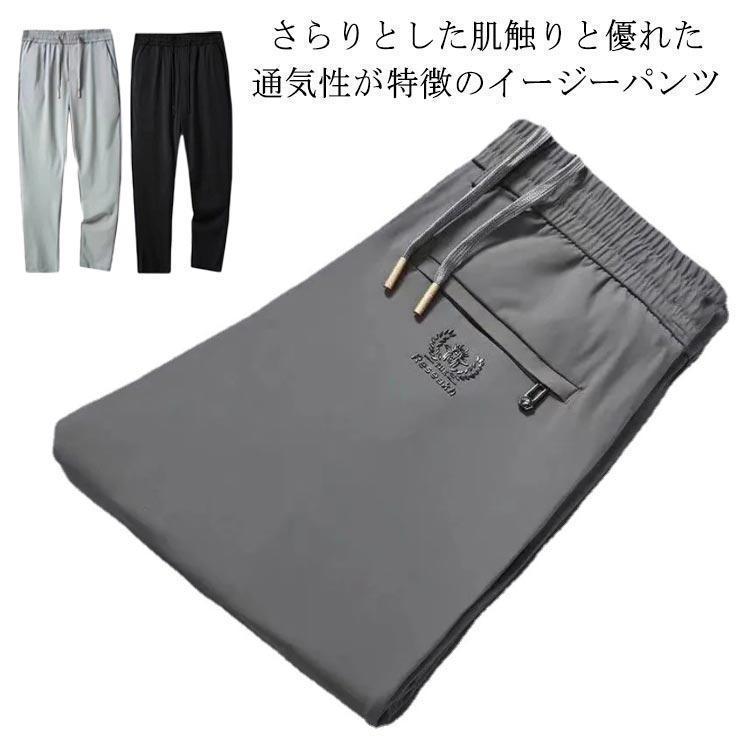 アイスシルク 接触冷感 ロングパンツ イージーパンツ 冷感パンツ メンズ 薄手 ゴルフパンツ ウエストゴム ストレッチ 伸縮 美脚 長ズボン 通気 速