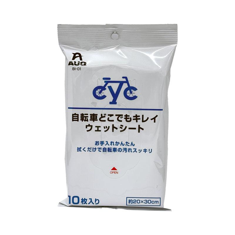 【爆買WEEK 最大P24倍 12/19-21】自転車用 ウェットシート どこでもキレイ 10枚入 約20×30cm 汚れ落とし アウグ BI-01