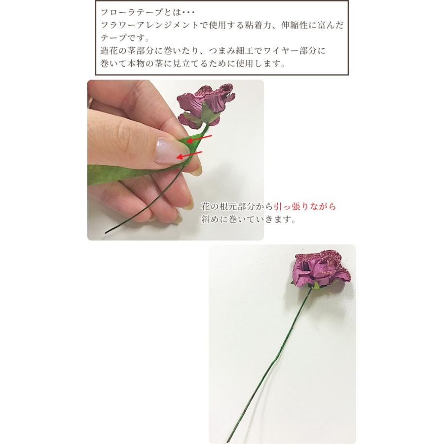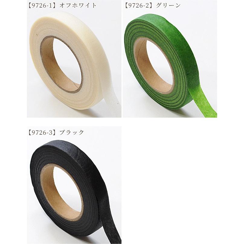 〜 フローラテープ 〜 約12cm幅 26m 全3色#ゆうパケ16点可フローラテープとは・・・フラワーアレンジメントで使用する粘着力、伸縮性に富んだテープです。造花の茎部分やつまみ細工のワイヤー部分などにお使いいただけます。髪飾りにはブラック、ウエディング用にはホワイトなど用途、雰囲気に合わせて使い分けてください。フローラテープは伸ばすことで粘着力がでる為伸ばしながら巻きつけます。