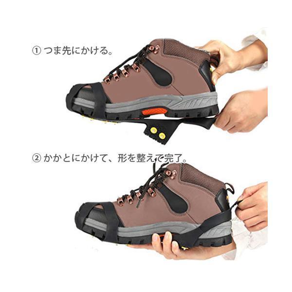 こちらの商品は追跡可能メール便/定形・定形外郵便にて発送します。宅配便ご希望のお客様は「有料宅配便」をご選択ください。【商品説明】・凍結路面での転倒などから身を守ります。・ガリガリの路面で威力を発揮。片足10本、両足で20本のピンが、がっちりガード。・装着はつま先とかかとにひっかけるだけで完了です。【商品仕様】サイズ Mスノースパイク アイススパイク 靴 滑り止め スパイク 靴底 アイゼン 雪道 携帯 かんじき シューズスパイク すべり止め