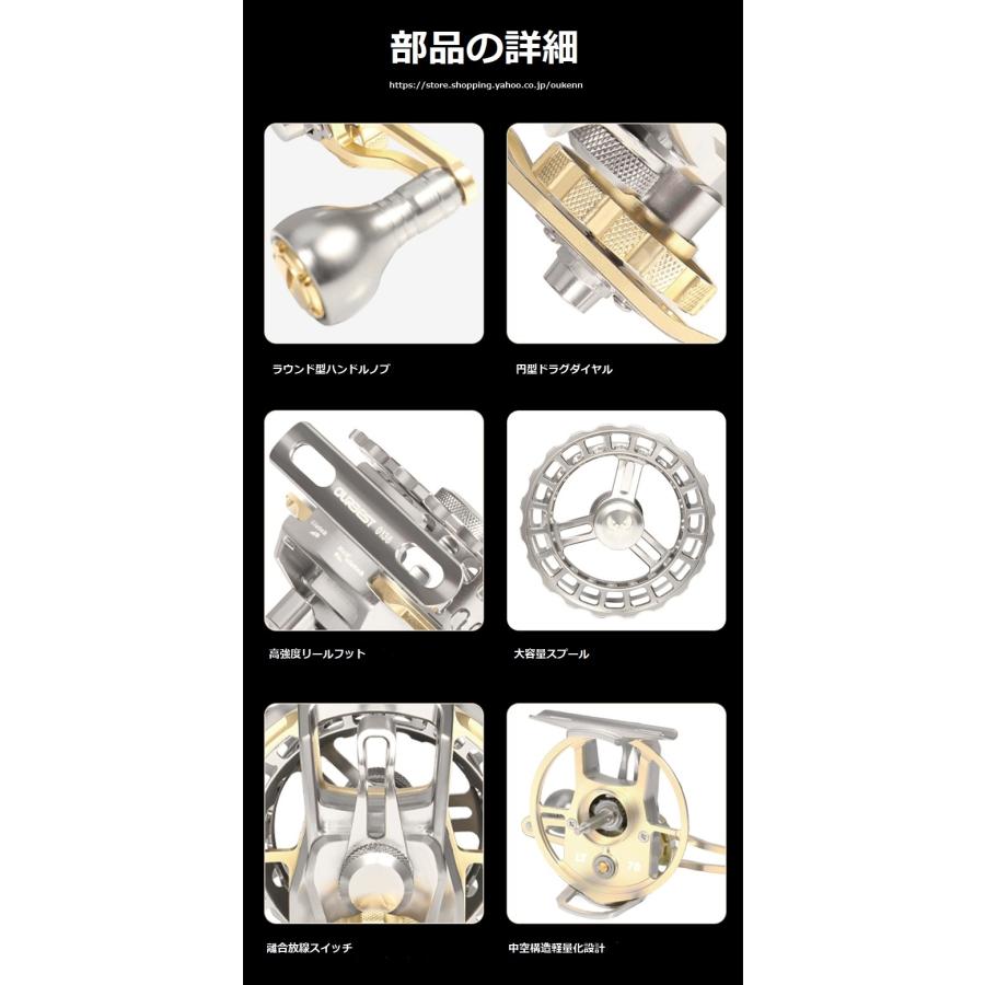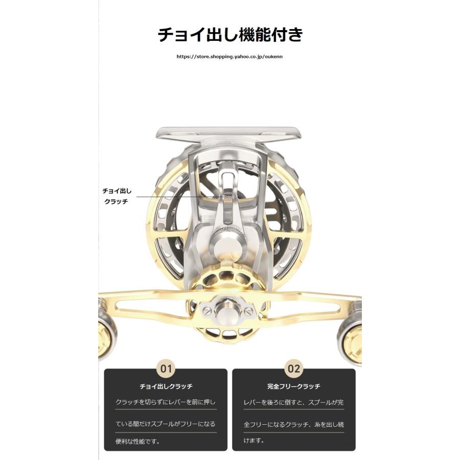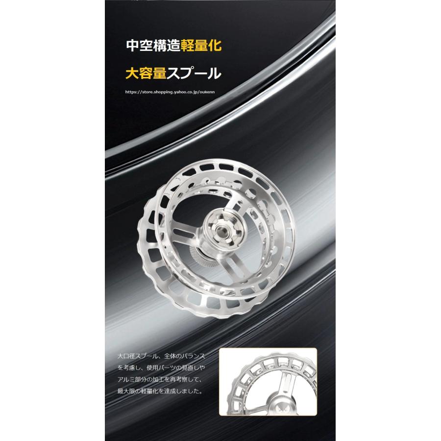 金属製のスプールは巻糸量が多く、中空構造により、大幅な軽量化を実現された。変形しにくく、性能も安定。リール本体は高品質のアルミニウムで作られて、超軽量、防腐食加工され、錆にくく、優れた耐久性を実現した。強力なドラグ機能で、チヌ(クロダイ)など引きが強い魚とのやり取りにも安心です。