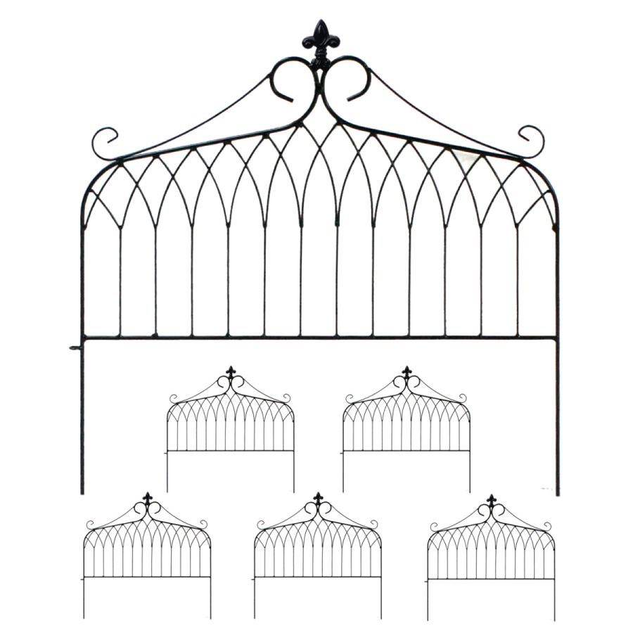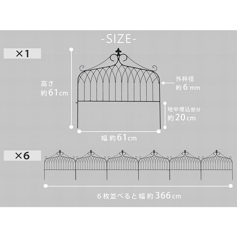 土の地面に差し込むタイプのアイアン ガーデンフェンスです。