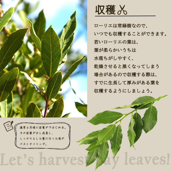 庭木のシンボルツリーとしてはもちろん、葉にはシオネールという微香成分あり、食欲増進や消化を助けるなどの効果があると言われています。ハーブとしての芳辛料や料理の香り付け、焼酎の味のまろやかさ、乾燥葉の入浴剤としてのリラックス効果など色々なシーンで香り月桂樹ローリエの効能をお楽しみください。