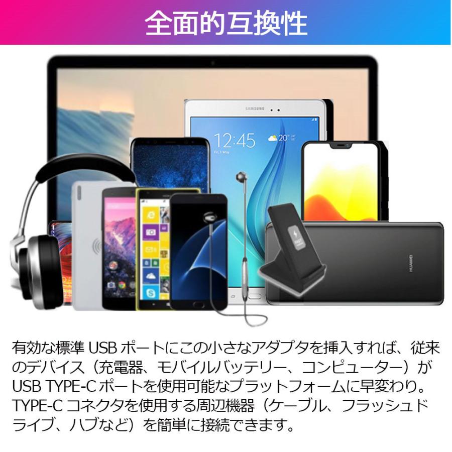 1.有効な標準USBポートにこの小さなアダプタを挿入すれば、従来のデバイス(充電器、モバイルバッテリー、コンピューター)がUSB TYPE-Cポートを使用可能なプラットフォームに早変わり。