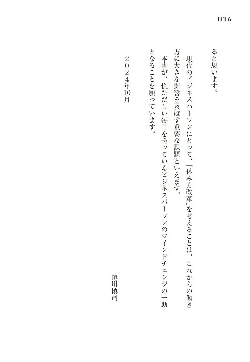 越川慎司(コシカワシンジ)株式会社クロスリバー代表取締役。国内外の通信会社に勤務した後、2005年にマイクロソフト米国本社に入社。業務執行役員としてPowerPointやExcel、Microsoft Teamsなどの事業責任者を歴任する。2017年に株式会社クロスリバーを設立。世界各地に分散したメンバーが週休3日・リモートワーク・複業(専業禁止)をしながら800社以上の働き方改革を支援。京都大学など教育機関で講師を務める他、企業や団体のアドバイザーを務める。オンライン講演・講座は年間300件以上、受講者満足度は平均96%(本データはこの書籍が刊行された当時に掲載されていたものです)