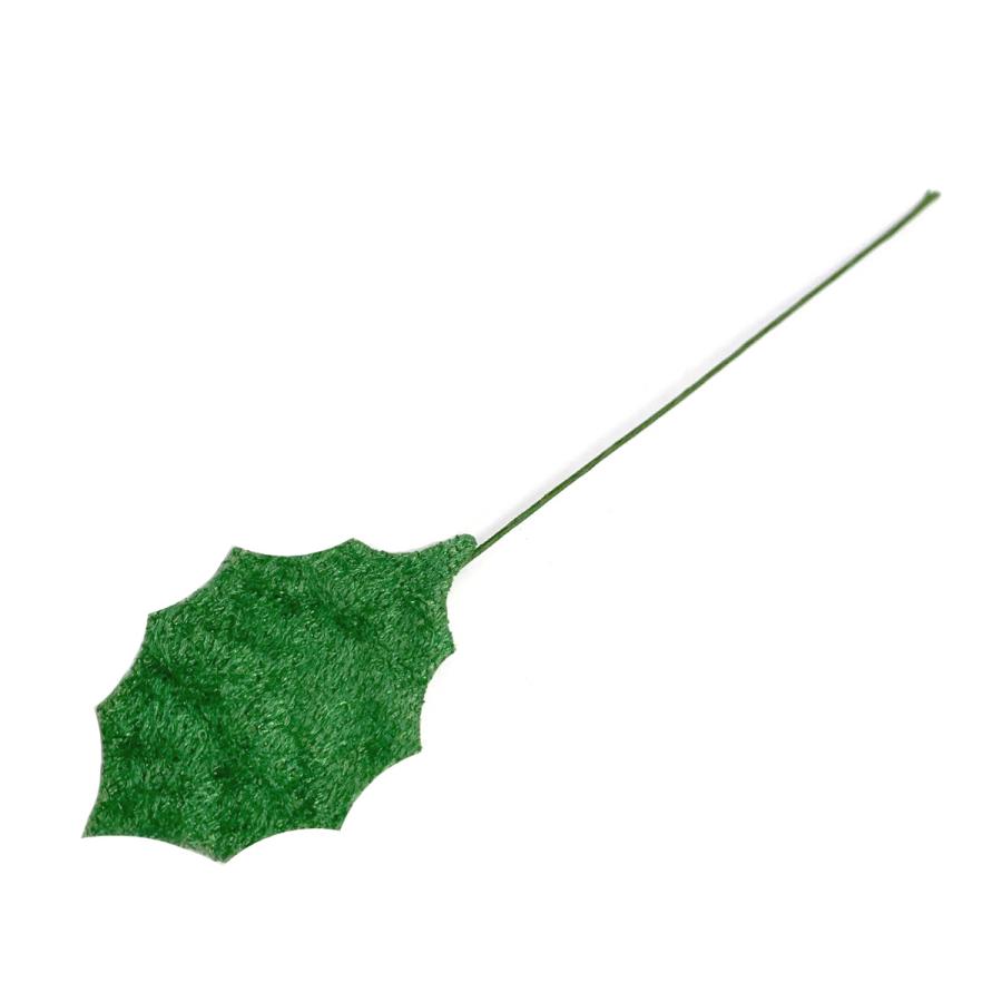 リーフ ヒイラギ M ベルベット 緑 (1枚)造花 クリスマス