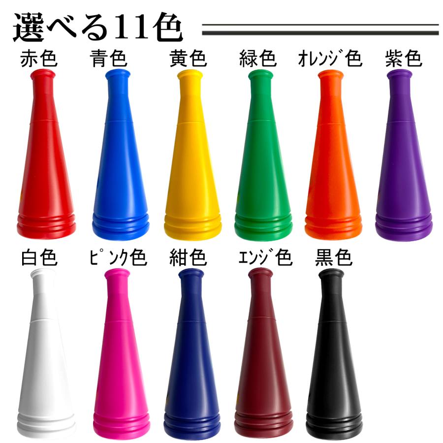 赤色,青色,黄色,緑色,オレンジ色,紫色,白色,ピンク色,紺色,えんじ色,黒色のからお好きな色を組み合わせて1つのメガホンにすることができます。