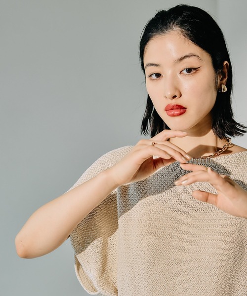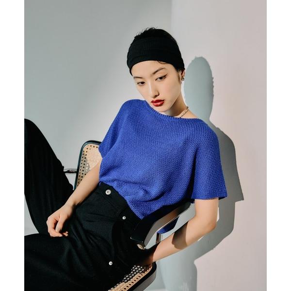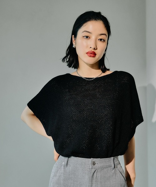 キーワード:ニット セーター レディース ボートネック 半袖 無地