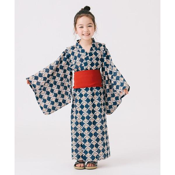 浴衣 「簡単着付け・水洗い可」扇柄 浴衣 2025SS(90〜140cm) キッズ 子供 男の子 女の子