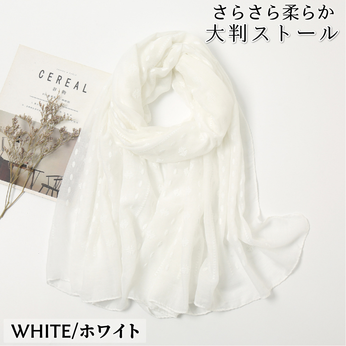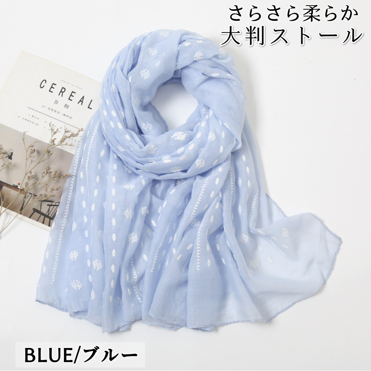 サラッとしたやさしい手触りが春夏にぴったりなストールです。