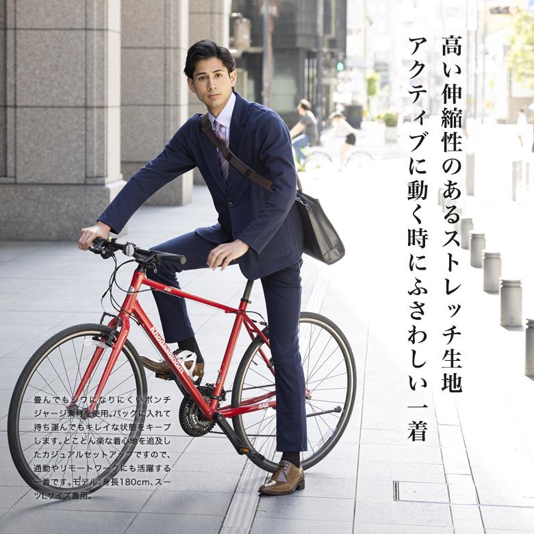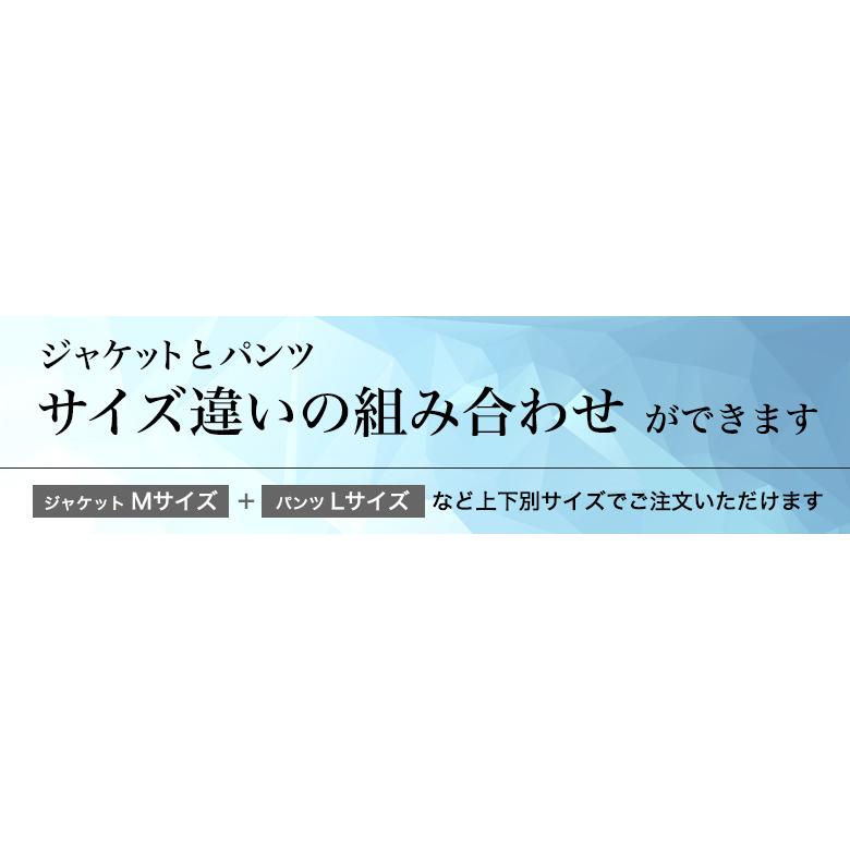 ストレッチ&ポンチ素材はシワになりにくく、ハリあり旅行なども持ち運びにも便利。また、ご家庭の洗濯機でも洗う事ができてお手入れも簡単です。ジャケットはジーンズやチノパン、スラックスと合わせてキレイめのカジュアルとして、通勤、通学、ゴルフなどスポーティな着こなしにも幅広く活用できます。パンツは足首にかけて細身のすっきりとしたテーパードシルエット、Tシャツとあわせてスポーティカジュアルや、ホームパーティなどルームウェアとしてもお洒落に着こなせます。ゆとり、細目などお好みに合わせ上下別サイズでのご注文にも対応致します。
