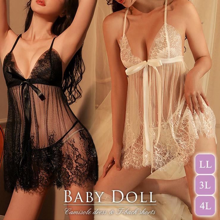 ★☆大きいサイズ レディース ベビードール 下着 セクシー キャミワンピ ネグリジェ チュールレース LL 3L 4L☆★
