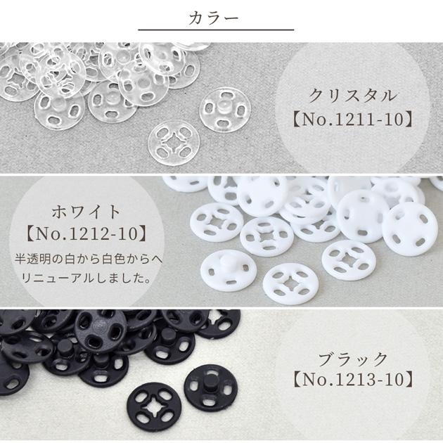 縫付 プラスナップ 10mm 20組 プラスチック製 スナップ 着物 ボタン プラボタン レインウェア アウトドア ホック スナップボタン プラボタン 手作り ホック 手芸 パーツ ハンドメイド 材料 手芸用品 洋裁材料縫付 プラスナップ 10mm 20組 全3色 #ゆうパケ60点可金属アレルギーの方にもやさしいプラスチック製スナップ。軽量でサビないので、レインウエア、アウトドア用品など幅広くお使いいただけます。縫い付けタイプですので、ハンディプレスは不要です。