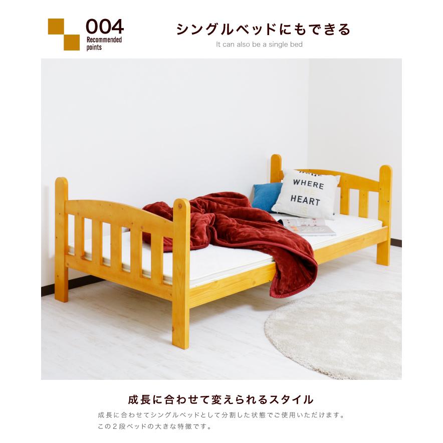 二段ベッド 2段ベッド シングル 木製 パイン 天然木 ベッド はしご付き モダン カントリー調 無垢 / 子供部屋 ベット 高さ160cm ライトブラウン ナチュラル ホワイト 白 シングルベッド 分割 セパレート 送料無料 通販 sanjp-0147