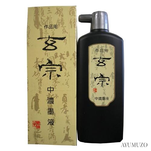 【商品詳細】商品名:墨運堂 玄宗 中濃墨液 500ml商品サイズ(mm):73×53×211外装サイズ(mm):77×54×215固形分:12.5%墨色と特徴:紫紺系の純黒。「鉱物性直火焚松煙」「合成糊剤使用」作品用『玄宗』は固形墨のもつ条件、書き味、のび、紙への浸透性・表具性をすべて兼ね備えた液体墨。鉱物性直火焚煙の紫紺系の色調は黒味の強さを表現。低温下でも粘度変化が少なく、年間を通して安定した流動性を保つ。漢字・調和体の練習・作品作りに適しています。品番:11809
