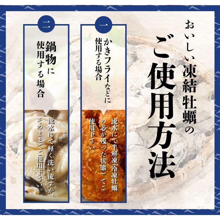 解凍後、カキフライや牡蠣ごはん、アヒージョ、ガーリックソテー、シーフードグラタン、お鍋の具材等でお召し上がりください。