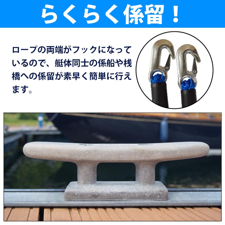 ゴムの伸縮が風や波からの衝撃を和らげるので、係留ポイントが移動しません。