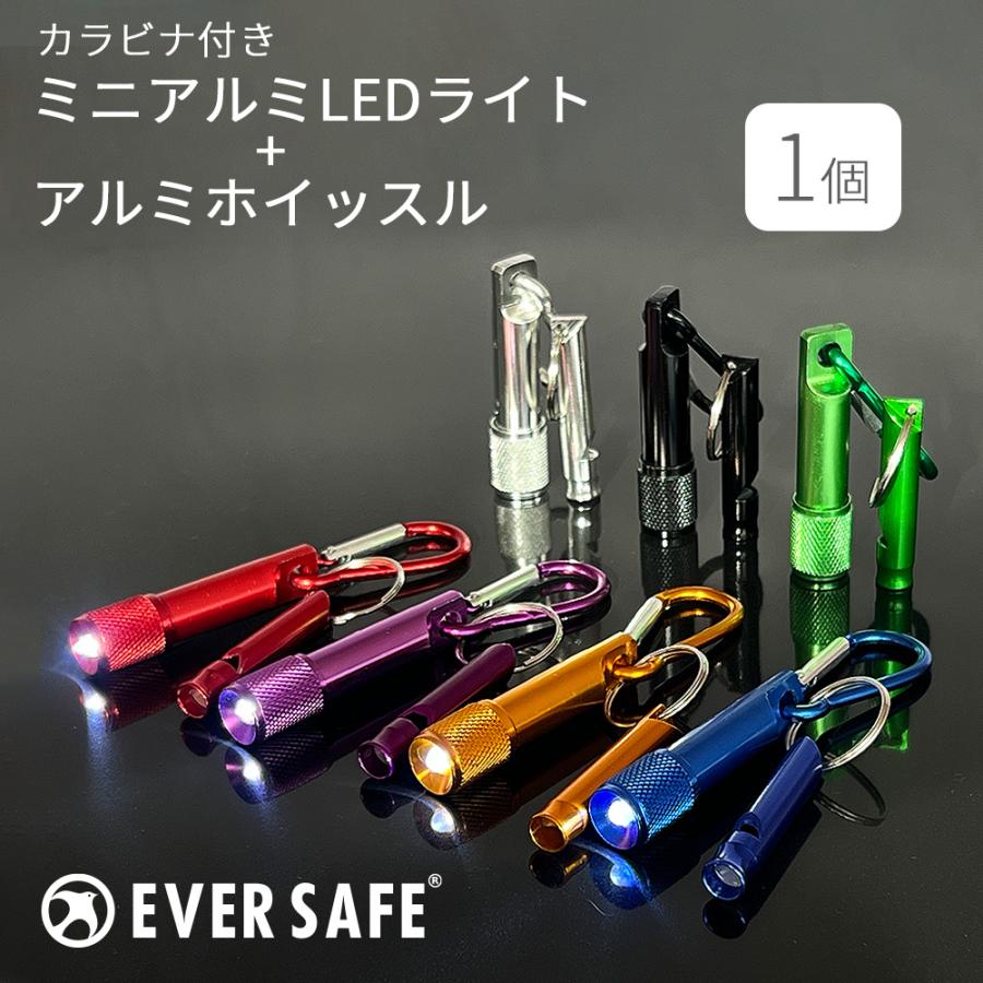 ミニライト カラビナ付 ミニアルミLEDライト&ホイッスル 1個 笛 LED 緊急避難 救助信号 防災グッズ 小型軽量 防災セット CAWH01 EVERSAFE メール便20個まで
