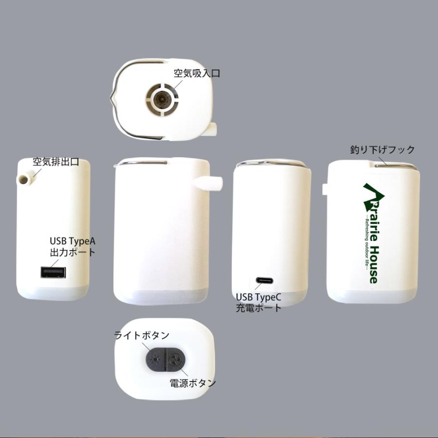 ■LEDライト付 モバイルバッテリー内蔵ミニエアーポンプ