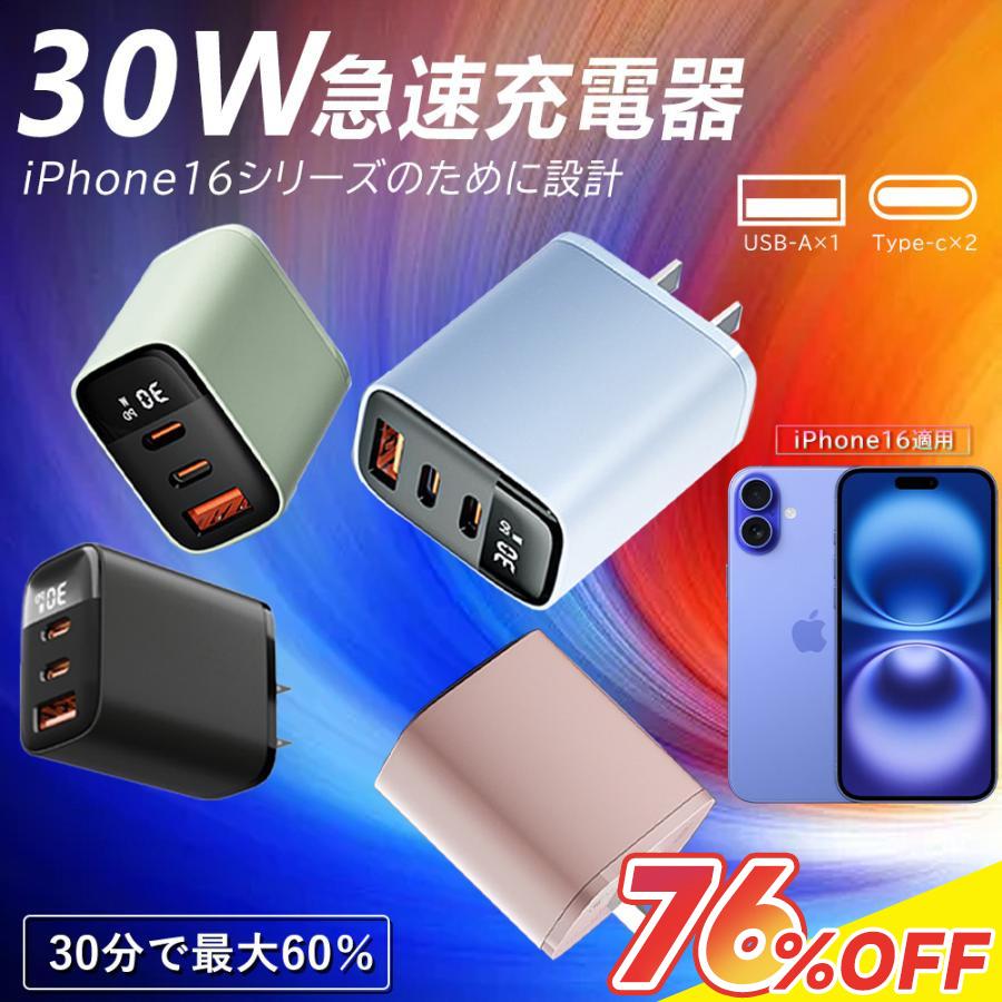 【幅広い互換性&卓上の簡潔化!】usb c充電器は、ノートパソコン(MacBook Pro 16、15、14、13インチ、MacBook Air、Dell XPS 15/13、HP Spectre/HP Chromebook) タブレッド、iPad 、iPhone、Android、ブルートゥースイヤホン、ゲーム機、など多機種に対応。三台同時充電。