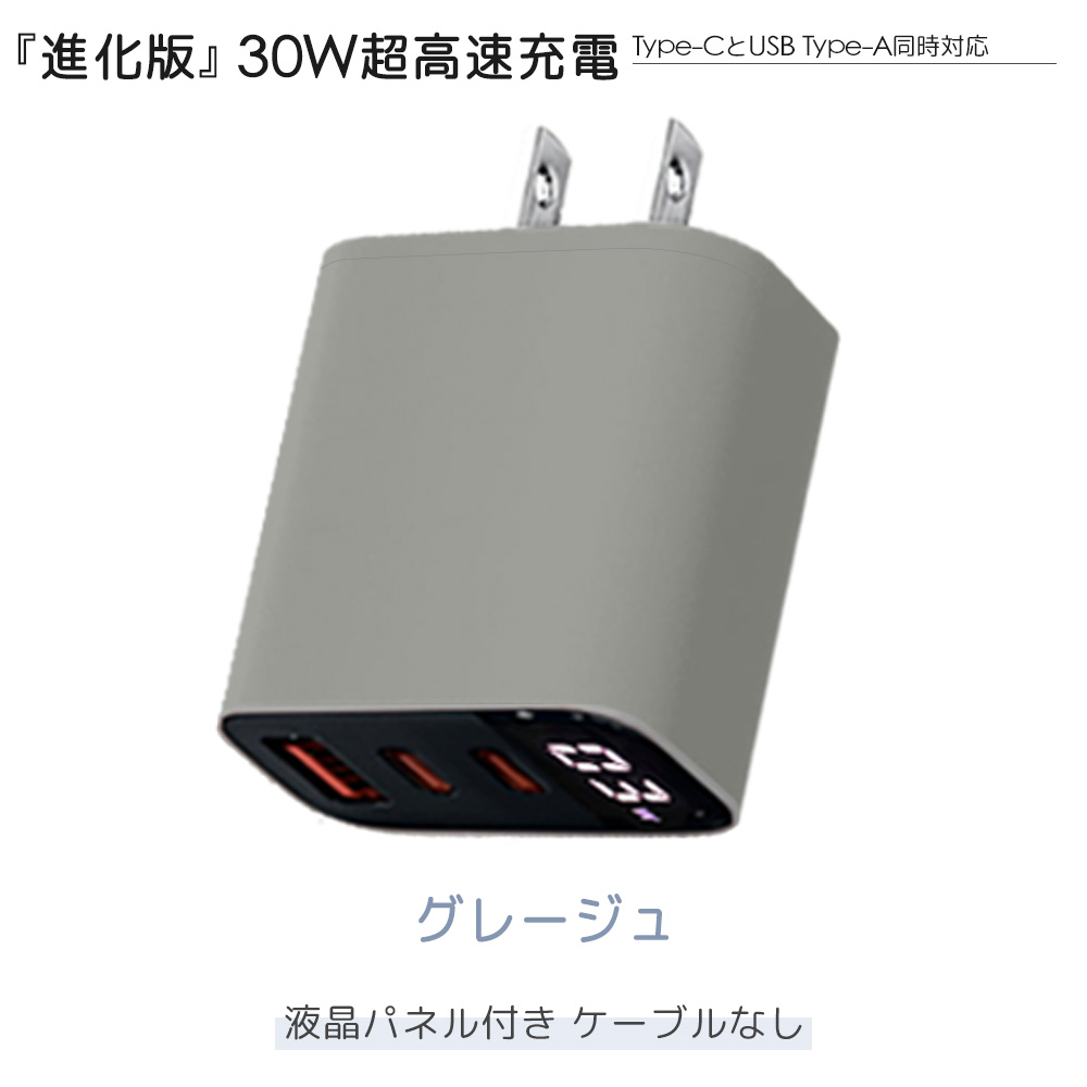 【GaN (窒化ガリウム)IC採用!】従来のシリコン半導体と比べ、充電効率が高く高出力でも発熱を抑えられ。厳格な電気用品安全法(PSE)に認証されており、安全性と高速性を保証します。また、cタイプ 充電器は「GaN」窒化ガリウムICを採用して、軽量化、高效率、過熱、過充電、安定性安全性向上、多機能性などの利点やメリットが揃います。長時間使えるでもあんしんを感じられる。