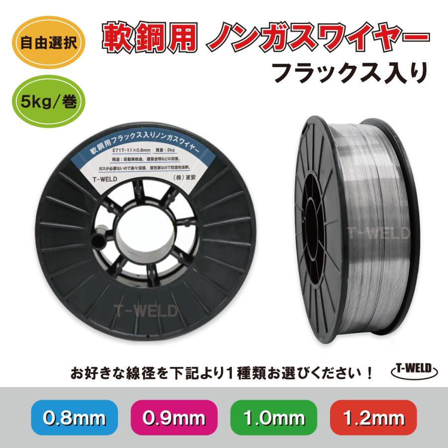 <自由選択!> ノンガスワイヤー(フラックス入りワイヤ)軟鋼 5kg・巻 (線形 0.8 0.9 1.0 1.2 mm) 1巻単価