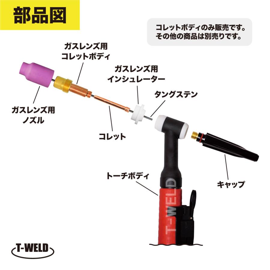 組み合わせ自由 TIG ガスレンズコレットボディ