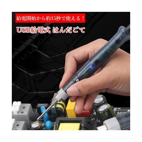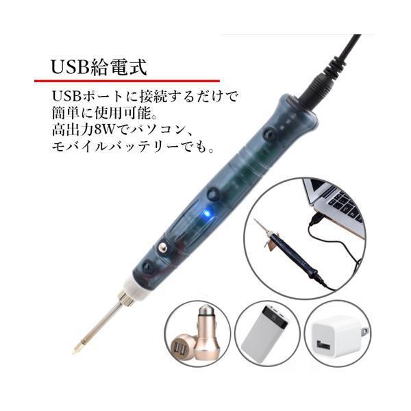 こちらの商品は追跡可能メール便/定形・定形外郵便にて発送します。宅配便ご希望のお客様は「有料宅配便」をご選択ください。【商品説明】・USB給電式 USBポートに接続するだけで簡単に使える半田ごてです。・高出力8Wでパソコン又は、モバイルバッテリーに繋いでお使い頂けます。 繋いで約15秒程度で使えます。使い終われば約30秒程度で冷めます。・コンパクトですぐに使えるので場所を選ばずに使えます。はんだごて 半田ごて USB給電式 高出力 8W こて先 コンパクト 15秒で使える