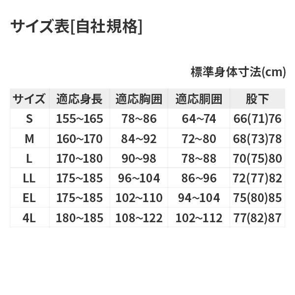 ELサイズ/適応身長:175〜185cm、適応胸囲:102〜110cm、適応胴囲:94〜104cm、股下:75(80)85cm