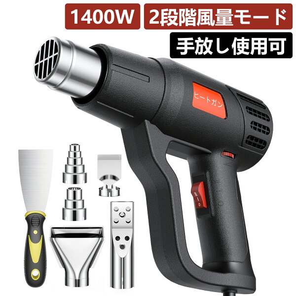 【無段階調温★手放し可!】ヒートガン 2段階風量 無段階調温 ヒートガン ホットガン 1400W ヒートエアガン 50℃〜650…