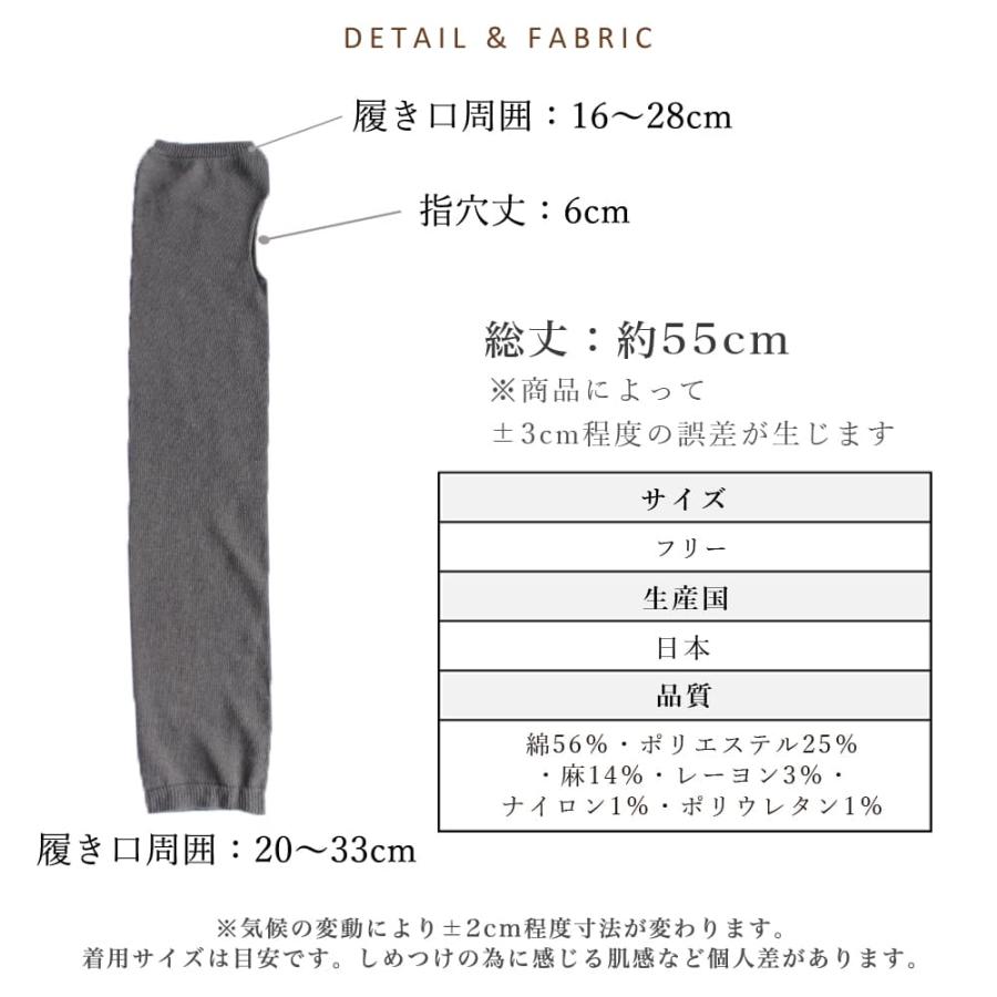 天然繊維の綿&麻で作られたアームカバーはさらさらの爽やかな着け心地です。