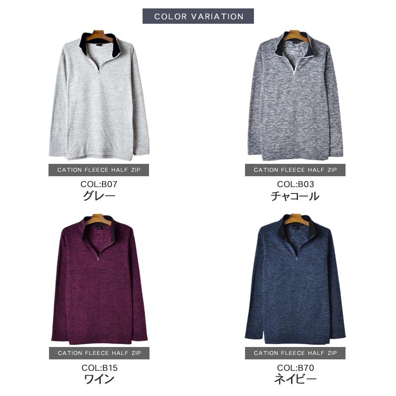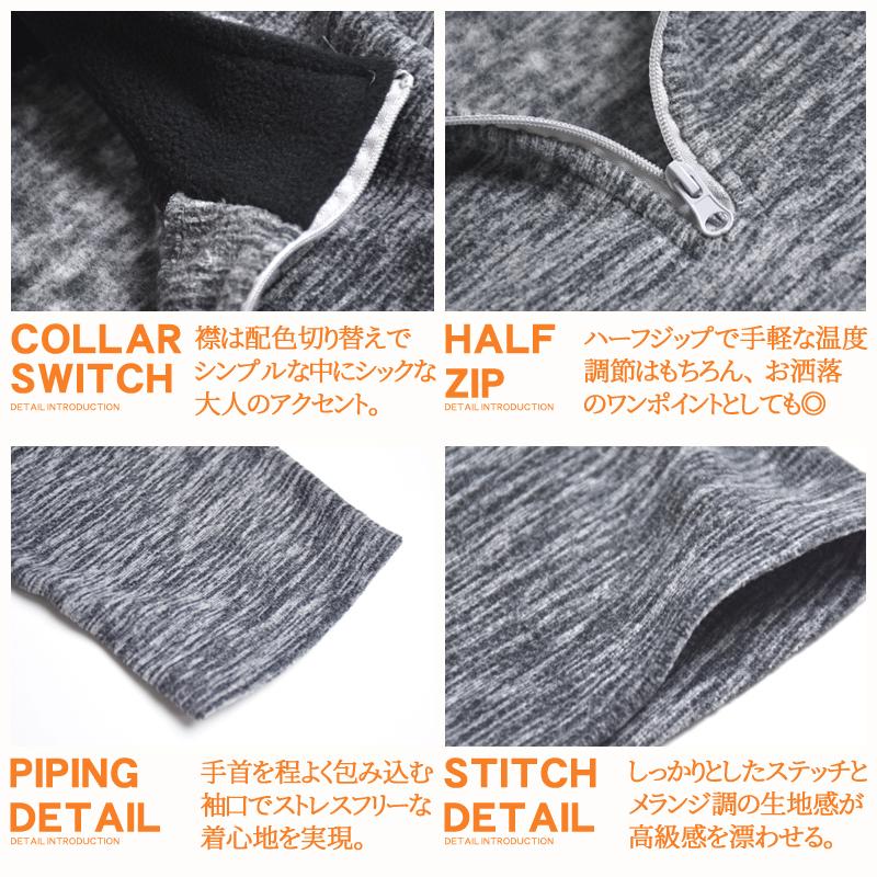 今年のトレンドハーフジップに襟元の配色と表情豊かなメランジ調の生地が大人の雰囲気を醸し出すハーフジップフリース!カラーは4色展開でバリエーション豊富に品ぞろえ。軽量で柔らかい肌触りのストレスフリーな着心地で、部屋着はもちろん、外着でも使えるマルチアイテム。