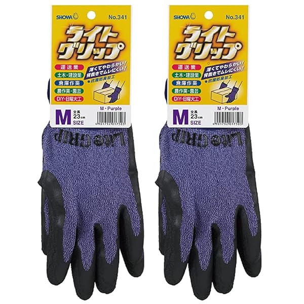 ショーワグローブ(Showaglove) 作業用手袋 No.341 ライトグリップ Mサイズ パープル 1双 2個セット