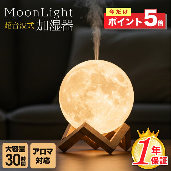 【スパセ割引】【最短翌日配送】加湿器 ライト かわいい 月 アロマ アロマウォーター対応 間接照明 LED アロマディフ…