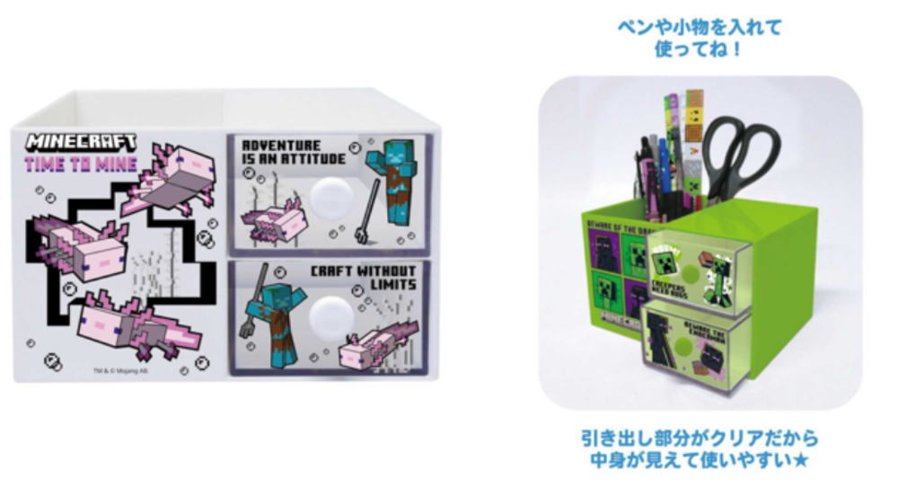 卓上収納 ペンスタンド付きプラチェスト マインクラフト ウーパールーパー Minecraft 小物入れ 収納ケース