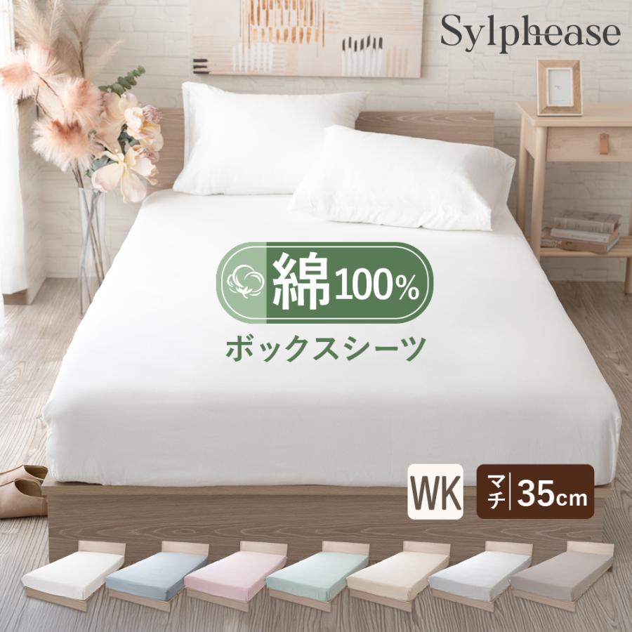 ボックスシーツ ワイドキング 綿 綿100% マットレスカバー ベッドカバー ベッドシーツ BOXシーツ 200×200cm マチ35cm