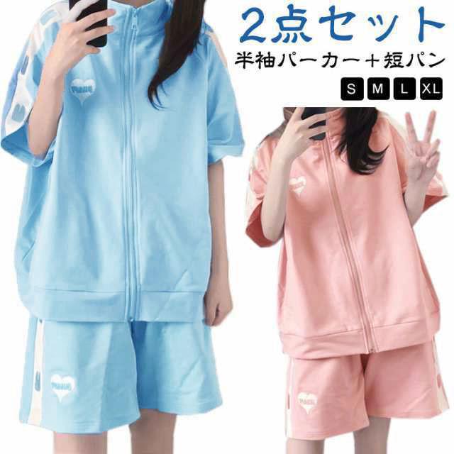 ジャージ 上下セット レディース 2点セット かわいい 春夏 半袖 ゆったり 女子 服 学生 高校生 前開き トップス パーカー ショートパンツ セッ