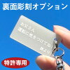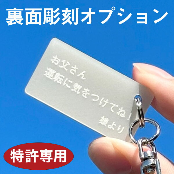 特許ナンバープレートキーホルダーの裏面にお好きなメッセージを彫刻するオプションサービスです